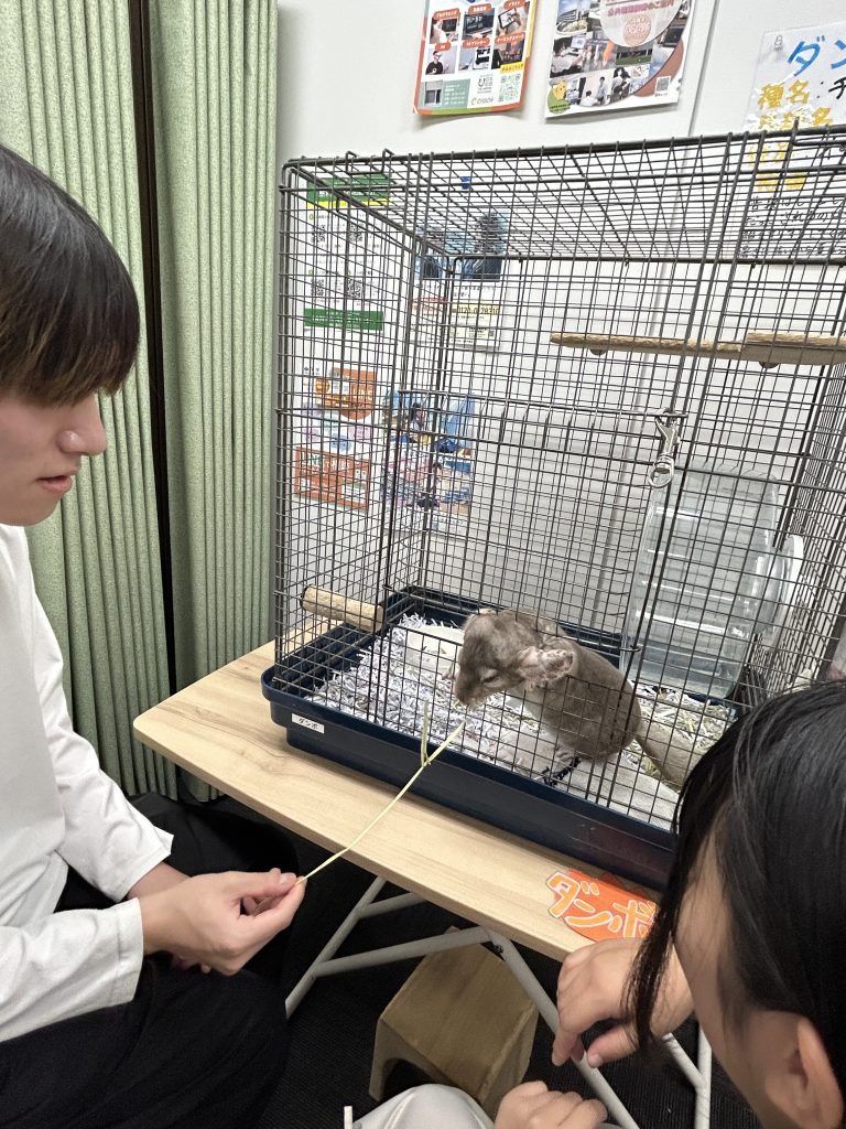 チンチラのダンボさんに餌やり体験