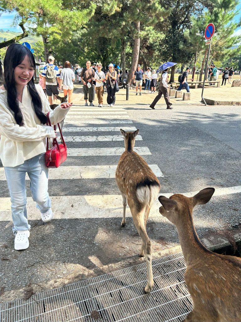 奈良公園へ鹿に会いに・・🦌 2025.10.15キャンパスブログ 少しずつ秋の気配を感じるようになってきました。 鹿もカメラ目線で一緒にハイ!チーズ✌ とっても可愛かったです💓 お天気に恵まれ、たくさんの観光客で賑わっていた奈良公園でした。 キャンパスブログ京都伏見校, 正化学園高等部, 鹿島朝日高等学校